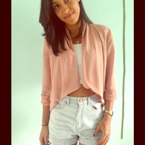 Peach cropped laced blazer.