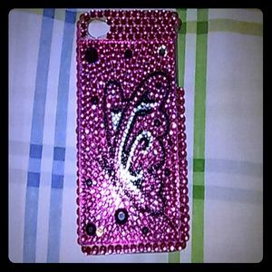 Nice full pink glitter rhinestone iphone case with a black n silver butterfly designs