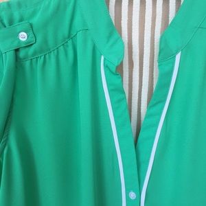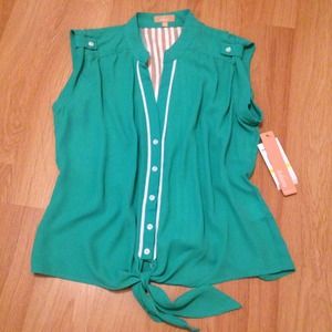 NWT!!! PRICE IS FIRM!! Purchased at Dillards this summer!! My return deadline expired so I can no longer return this beauty!! I purchased a size M but lost weight so now fits me a little big for my liking so never got to wear itππ. Once again, My loss is your gain!!π Pictures show beautiful details on this top. White piping in the front, buttons on sleeves, tie knot front, and gorgeous lace details down the middle of the back!!π 100% Polyester βTrades βPayPal