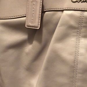 Retail $428 plus tax Color : Lavender 2 separate compartments for organizing snap magnetic closures center full length zipper pocket Interior fully lined in fabric 3 interior multipurpose slip pockets One interior zip pocket One pen slot Coach creed and serial number on the inside Double Leather Handles with 9.5” Drop Polished nickel hardware Dimensions: 16.5" x 10.5" x 4.5" 100% Authentic