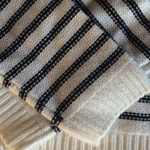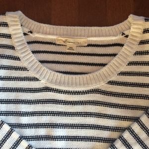 NWOT WHITE/BLUE STRIPED SWEATER.