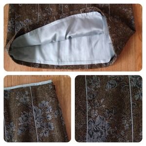 🚫Sold in bundle🚫 Ann Taylor tapestry pencil skirt. Size: 4. Waist (skirt laying flat) 14.5 inches. Hips (widest part): 19 inches. Length: 22 inches. Brown and light blue tapestry material with blue sateen pipping detail. Fully lined. Side zipper with hook eye closure. No slits. Thin waist band. So pretty for fall & winter! 🍂❄️🍂