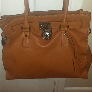 Authentic Michael Kors Hamilton large handbag. Comes with dust bag. Price is FIRM, no trades selling for a friend. 13"H x 14"W x 6 1/4" D. No rips or tears. Comes with strap. Please see additional photos in my closet. Just reduced to $200 and reduced again to $150.