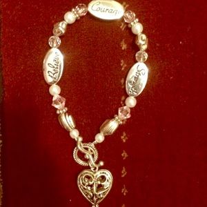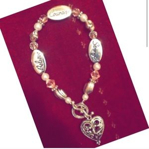 ❤NEW!Silver heart with "Courage" "Strength" "Believe" in black lettering! Heart Pendant in Silver! Super cute! ⭐️Clasp at Heart! 🎊🎆 2 $5 Bracelets for $8.00!! 🎇🎊 ADD 2 your Bundle!