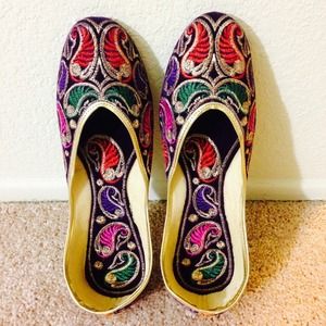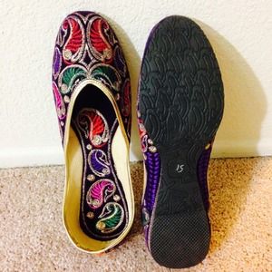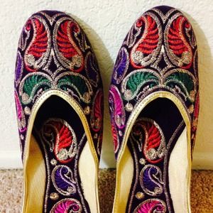 New Collection! Medley of beautiful red and purple color. Complete thread work. Detailed embroidery on the inside of the shoe too just to make your friend jealous when you remove them! Tend to expand a bit after 3-4 wears.Super Comfy! In India, we call these 'jutti'. India collection.