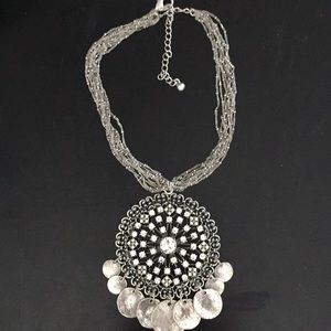 The Picture Speaks Volumes On This Beauty ๐นSilver Tone Intricate Medallion covered with Sparkling Rhinestones Has a Mesh type Chain with tiny Silver color beads enter twined with Lobster Claw Clasp ๐กLight up the Room with this one NWOT