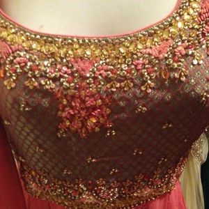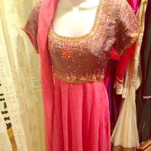 Gorgeous bollywood dress. This is a long gown. I'm 5'5 and size 8 fits great. Suitable for those who are from 5'1--5'7 great dress I paid $275 but must clean out my closet.