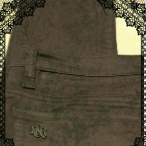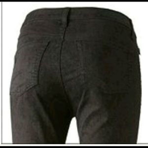 To me the see look brown and black but the description says dark burgundy snakeskin print. Inseam measures 32", 5 pockets, low rise sits on hip, contoured design through seat, thigh and leg, zipper fly...known as Berlin printed R & R.