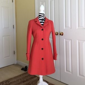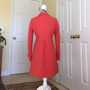 J.Crew Double Cloth Lady Coat. Used only a few times and in great condition. It is made of 94% Wool and 6% Nylon with 100% Acetate Lining. Size 2. Color- See pictures (to me looks like Coral to Orangy color). There is a slight flaw in the right collar as shown in the second picture, but it is not noticeable. Approximate Length from shoulder is around 33 inches. We are willing to negotiate the price. Give us an offer! ππ