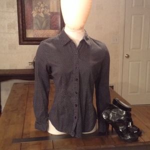 This black and white polka dot shirt is in good condition. It is a bit faded, but not very noticeable. Fitted and very flattering. It has a bit of stretch to it. 🎁FREE GIFT with every purchase. Return buyer?!?! Make sure you let me know so I can give you a special discount. Show your love by sharing this listing and HAPPY POSHING!!!