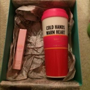 A pink cold hands warm heart coffee mug plus a Kate spade roller ball! Not used at all. Will sell separately. I will send more pictures. Open to trade