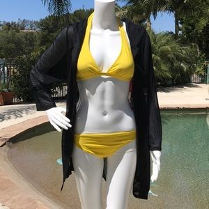 You'll look gorgeous in this black mesh cover up. Its perfect to throw on over your suit and take a stroll on the beach. Long sleeves and hood keeps you covered, while the mesh fabric keeps you cool. Buttons down the front, for an option to wear it open. The strategic style hides your hips, while minimizing rear and thighs. True to size. 100% polyester. Mannequin is wearing the 10/12. Also available in plus sizes in a separate listing😀