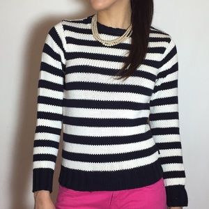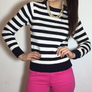 Beautiful Burberry London Sweater. White with navy hotizontal stripes. Size Small. Authentic. In pristine condition! NO Trades. Please make all offers through offer button.