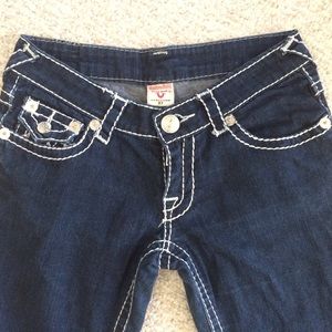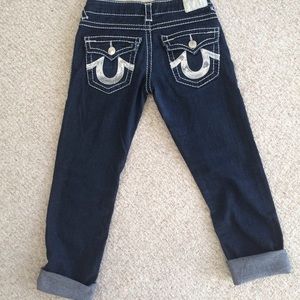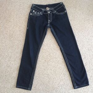 Cute True Religion capris. Size 27. If you wear a 29" inseam you could wear these as straight legs. Super cute for spring and summer! In excellent condition.
