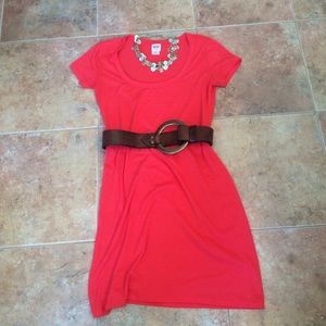 Cute coral colored t-shirt dress. Great dressed up or worn casually.