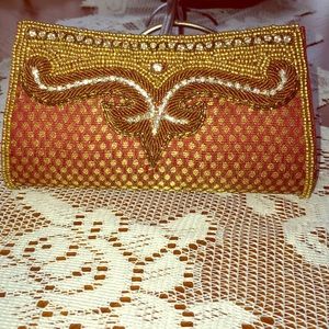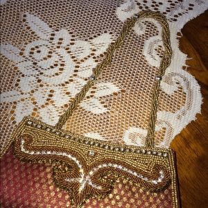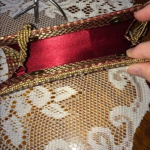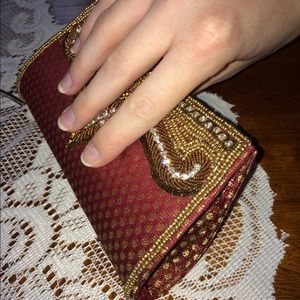 NWOT Beautiful maroon and gold clutch with diamond like accents. It has a strap that is optional to use.