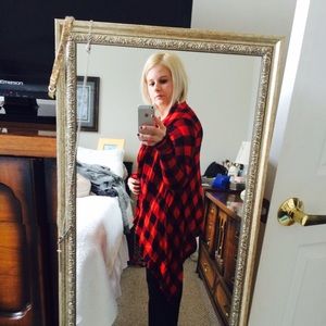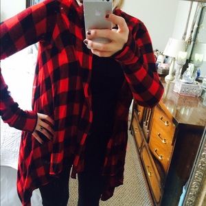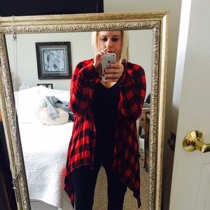 Mudd brand size small red and black open cardigan never worn shorter in the back and cascades in the front fits true to size