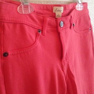 Stretchy coral jeggings. Super cute for spring and summer and super comfy.