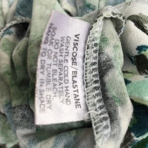 This is a GORGEOUS and comfortable designer dress by Leona Edmiston. It doesn't wrinkle and does not need to be dry cleaned. Fabric made in Italy; Dress made in Australia. The colors are stunning, greens, blues, grays. Wear with or without the matching belt. It was purchased at a boutique on Montana Ave. in Santa Monica. It is a size 3, which is a L/XL. It It would fit Size 10 -14 depending on body type. The fabric is generous and soft and has stretch to it! Forgiving and Flattering!