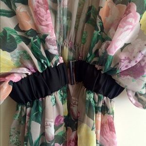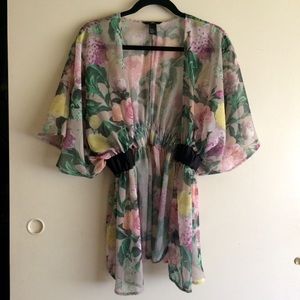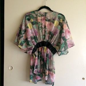 floral sheer kimono / buckle in middle / can be worn open or closed