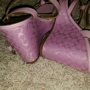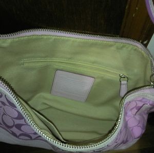 Both are used handbag has a blue dot on it. Suede and fabric signature Coach fabric on handbag