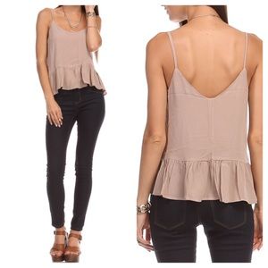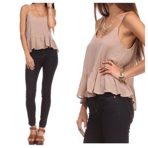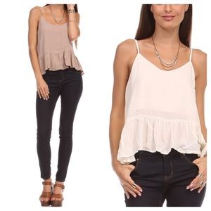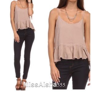 100% rayon crinkle gauze lovely truffle peplum tank top great style comes in black light mocha and off white. ONLY COLOR LISTED LEFT PLEASE DON'T PURCHASE THIS LISTING WILL MAKE YOU A PERSONALIZED LISTING THANKS