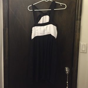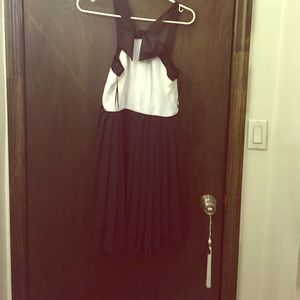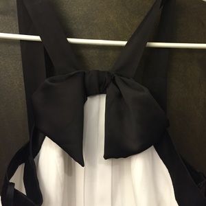 This has never been worn. Only reason I am selling it is because right after I bought it I gained weight. It's a very pretty date night dress. It's a O neck with a bow in the center of the chest. The zip is in the side. This is a very popular dress and is limited edition dress and was sold out immediately. They were resold online for 3, 4 times their price.