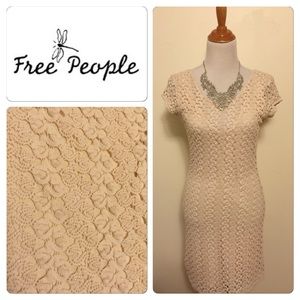 Love this soft pretty lace dress by Free People. Built in slip dress. Cream color. Polyester/ Rayon. Rayon lining. Size tag says M but fits more like S. Bust 36", L35". Will fit 4-8. EUC