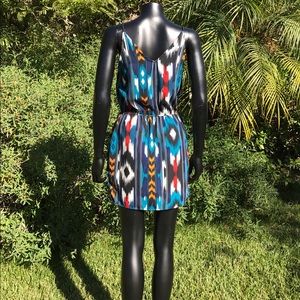 This adorable ethnic print sun dress is perfect for playing in the sun😍 It’s sexy and stylish fit, is super comfortable. Elastic waistband and slip on style compliments any figure. Side pockets and faux tie at waist. 100% polyester. Unlined, but not see through at all. Made in USA. Model and mannequin are both wearing a size small. Their measurements are bust 32b, waist 24", height 5'9". SMALL measures 17"armpit to armpit, 31" from top of shoulder to bottom. Large measures 18”armpit to armpit.