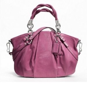 AUTHENTIC COACH MADISON PLEATED LEATHER SOPHIA SATCHEL. Rose shimmer in color. Handbag is in good condition. Main strap can be removed. Has been carried as evident in pictures. Please review, ask questions and as always, offers are welcome. No box or dust bag. Initial pic is photo stock and used for reference.