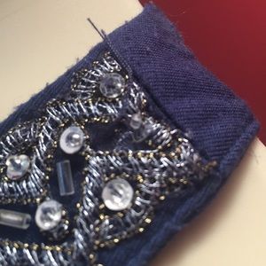 Adorable Navy Blue sleeveless top with embellished collar. Some of the embellishments are coming loose at both shoulders, see pics. The top is 62% Polyester, 33% Rayon and 5% Spandex. The top is machine washable!