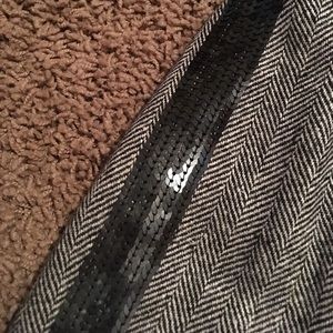 Matching jacket in size 8. Super cute pants with sequence on each side. Short rise. Kept in the garment back. Two back plackets - has not been one. Measurements: waist - 14 inches across, inseam - 18 inches, leg opening - 9.5 inches across. No holes, stains or pulls. Jacket has no pockets. Fully lined. Comes from a pet/smoke free home.