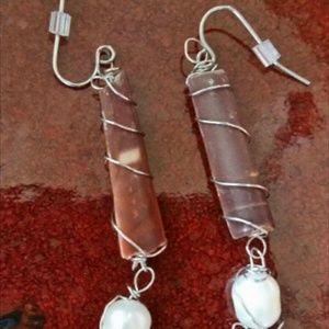 These beautiful handmade unique earrings pair well with everything! Fresh water pearls and wire wrap around stone.