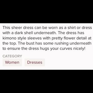 This sheer kimono floral dress looks sexy with a slip underneath or a cami, leggings and booties. The flutter sleeves, delicate cherry blossoms and soft flowy material make you feel like a fairy butterfly. Fitted at just the right places. NWOT. Never worn. M.