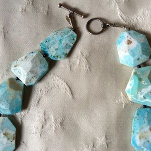 18" long amazing stones - beautiful colors - turquoise - camels - creams Just Fab- sterling antiqued silver toggle clasp