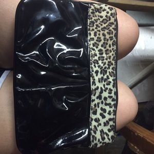 BNWT black w/ leopard trim wristlet