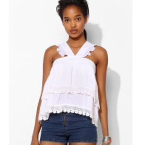 new pins & needles top from urban outfitters! it has two buttons at the front, and you can wear it with them buttoned or unbuttoned. there was a tag (a sale tag) ripped off from the top, but i don't know what it was marked down to. i reflected that in the pricing. my mom bought it for me, and she doesn't know how much she spent.