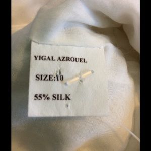 Dual spaghetti straps, triangle top, silver and ivory embellishments. Bust: 36". Waist: 31". Hip: 43". Length: 41".