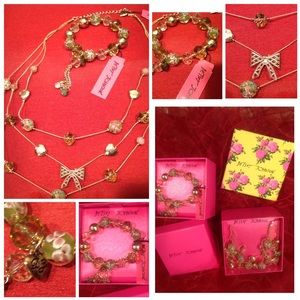 Betsy Johnson multi-row Necklace, flowery bracelet