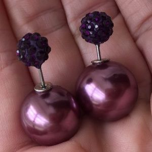 Blackberry colored fireball goes through earlobe to connect to large marble-sized portion. Large orb is the back of the earring and is intended to fit behind the earlobe. For pierced ears. May seem large is wearer is unaccustomed to double side earrings. Not shaped like blackberries. Brand new in package. No trades, no holding, no PP. 2/$15, 3/$22, 4/$29, 5/$35, 6/$40.