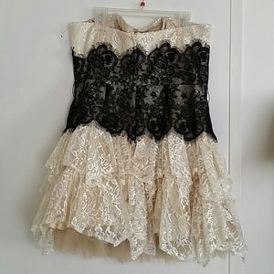 SOLD Champagne lace satin ruffle minidress