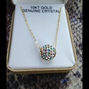 New, Beautiful multi color genuine crystal 10k gold pendant with chain, and come with a shiny golden box.