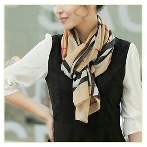 Beige Plaids Pattern Chiffon Soft Women's Scarf