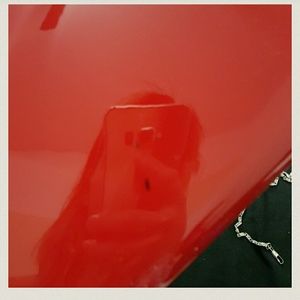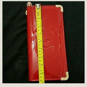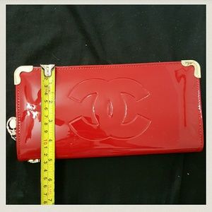 Big Apple red color wallet or wristlet or crossbody handbag with designer logo. Price reflect authenticity please do not ask if it is real or not. On the back there a spot of ink or something but not noticeable. It is shown in picture 4. This is brand new it comes with dustbag