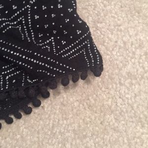 NEW black and white pattered flowy shorts with trim at bottom and pockets in the front