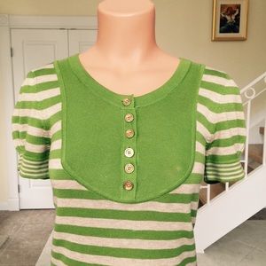 Soft 100% cotton. Has a petite tag, but can be worn as an XS. I'm 5'9 and thin. I'm definitely not petite ๐ but it fit me perfectly as XS. I guess it depends on how long/short you'd like to wear it. Again, this is very soft & feels like Cashmere to me. Worn once or twice. There is a small snag under the lower button that I took a picture of. Hardly noticeable. Hand wash/dry clean. The sleeves are very cute. ๐ Open to reasonable negotiations using the "offer" button. No trades, No PayPal. ๐ธ