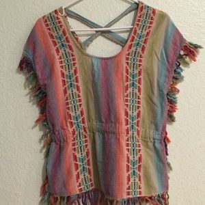 @smmtty 22" long (not including fringe) and bust is 16.5" while laying flat.