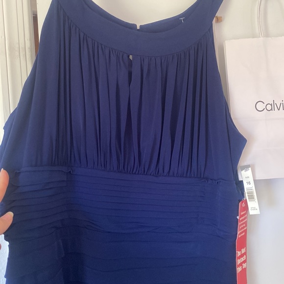 Amazing firm flattering cobalt dress is brand-new. It's so soft and slightly stretchy. It is marked size 16 but right now I am running at about a size 12 to 14 and it fits me good. Better buy it soon or I will decide to keep it for myself. It's awesome. Better prices with bundles. One of the plates has flipped up from being against other dresses in the closet… But it’s an easy fix with an iron.