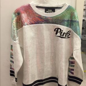 Limited edition PINK bling pullover crew neck hoodie. Has an open back as well. Never been used. Not looking to trade this item. Will sell cheaper through mercarriiiiii.