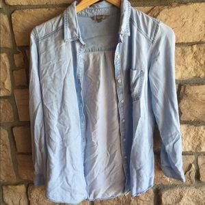 This adorable soft denim-life button down is the perfect layering top for any outfit! Only worn a couple times